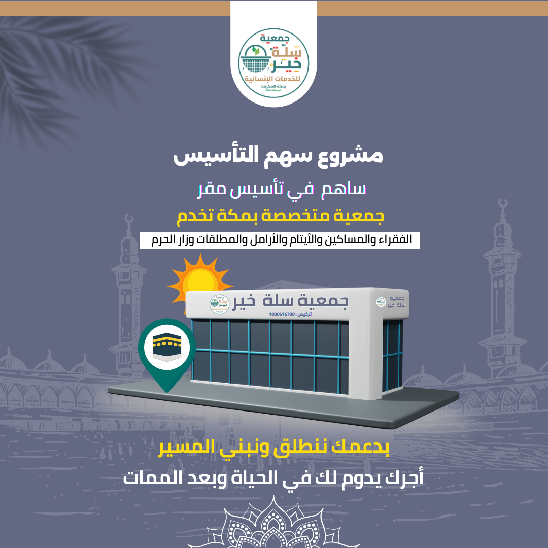 تبرع بـ50 ريال لتكون شريكًا في دعم وتأسيس كيان الجمعية، صدقتك تساهم في إطلاق الجمعية التي تخدم الفقراء والمساكين والأيتام بمكة.
